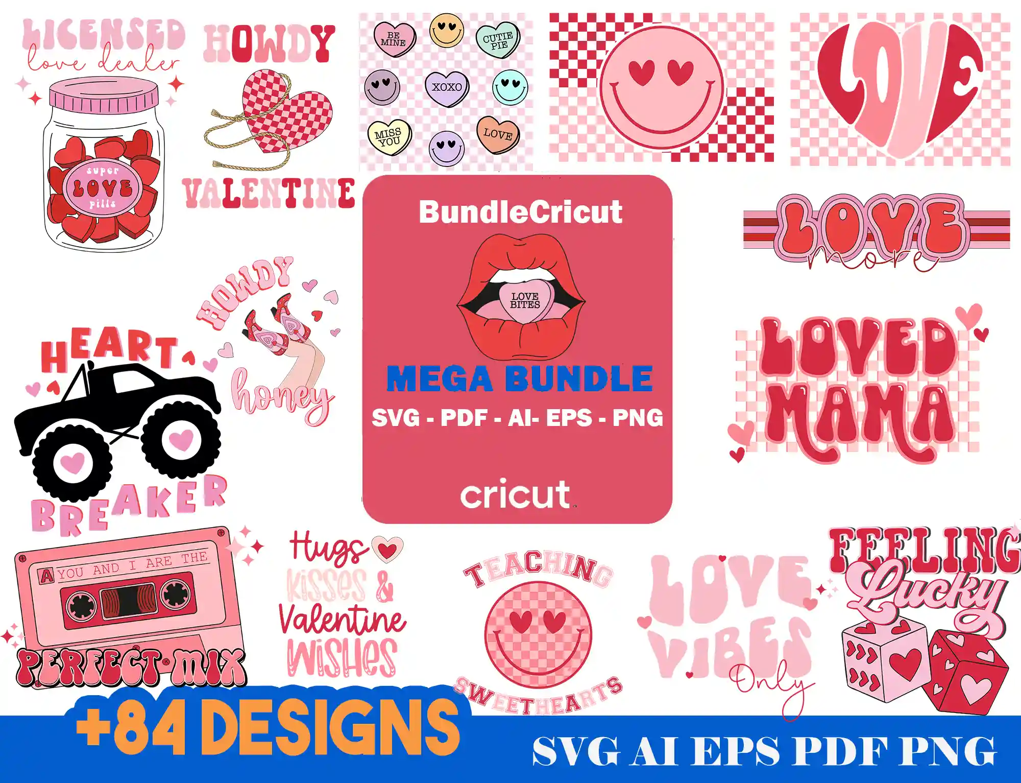 Celebrate love and warmth this Valentine’s Day with our Valentine Mega Bundle! This expansive collection is your ultimate creative companion, featuring an eclectic mix of Valentines Day SVGs, retro Valentine PNGs, and adorable kids’ Valentine SVG bundles. Designed to cater to a wide array of projects, this bundle also includes an impressive selection of PNG bundle sublimation designs and mama PNG designs, perfect for crafting heartfelt gifts and decorations.