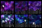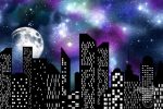 This is a set of 12 dramatic watercolor galaxy backgrounds with city buildings in the foreground. Each image measures 12 x 12 inches (30.5 x 30.5 cm) and has 300 dpi resolution. They will align seamlessly from side to side.